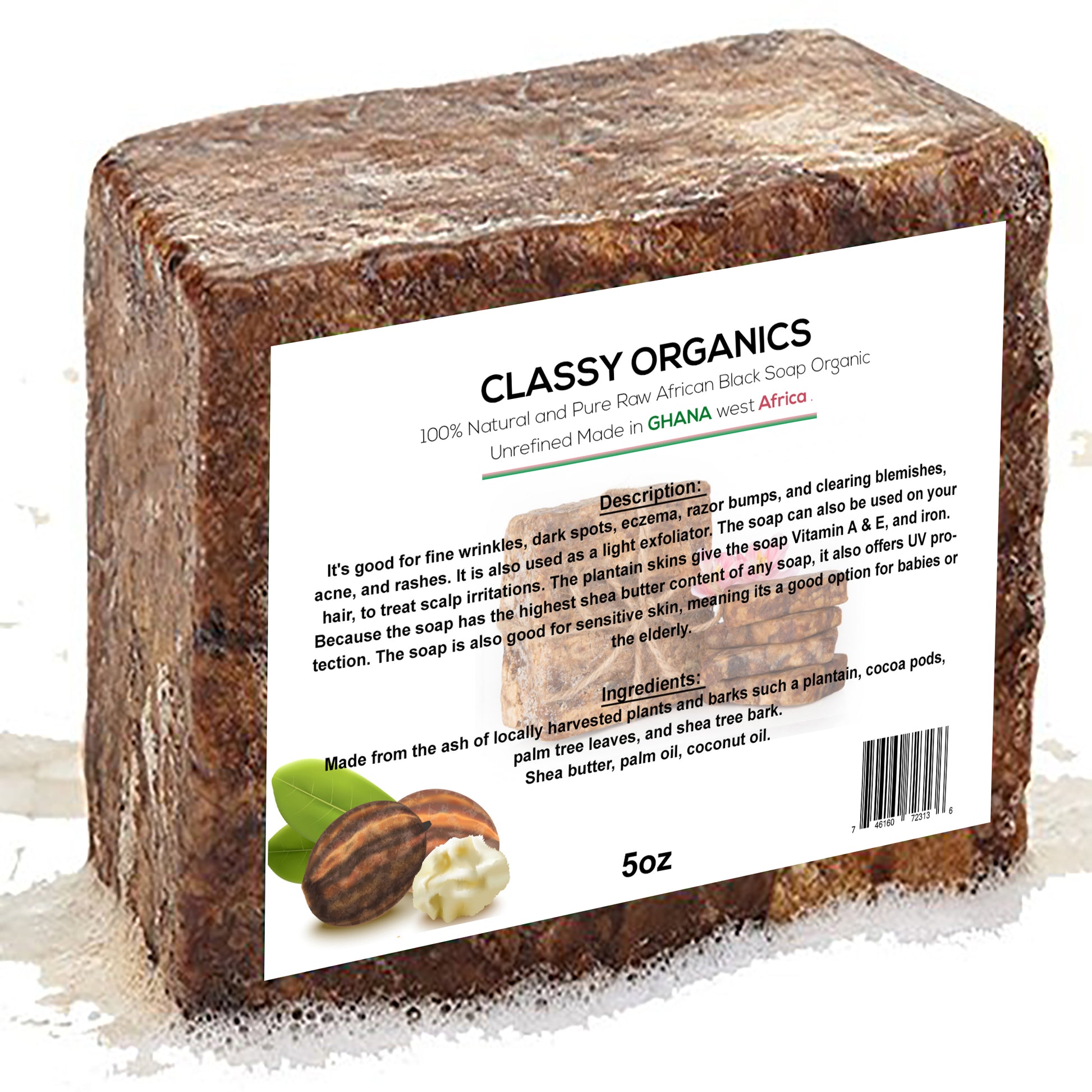Classy Organics 100% Natural and Pure Raw African Black Soap, Organic, Unrefined Made in GHANA west Africa